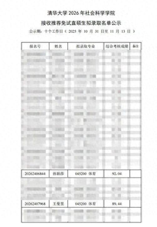 本年9月,清华大学社会科学学院发布《清华大学2026年社会科学学院继承优秀应届本科毕业生免试攻读照料生概括旁观名单公示》,其中,孙颖莎、王曼昱在列。